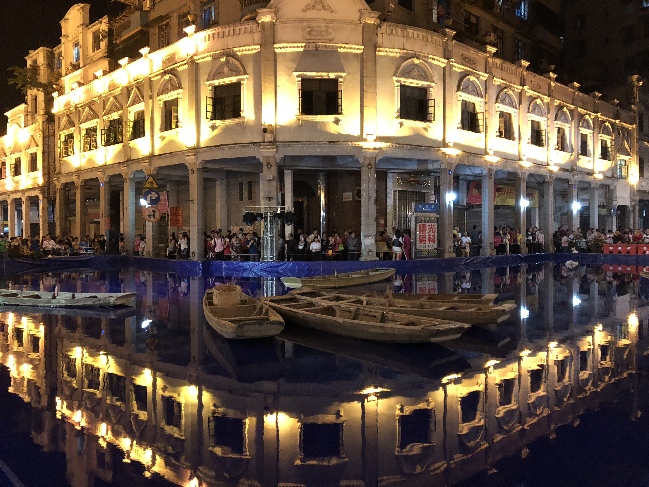 ????晚上6時,主辦方繼續往水街注水,水街水位深度上升至35厘米。晚上7時許,大批市民、攝影愛好者聞訊而至,紛紛拿出手機、相機拍攝。騎樓上的燈光,水街上的倒影,一張張色彩飽滿、美輪美奐的水街照片,再次刷爆微信朋友圈。