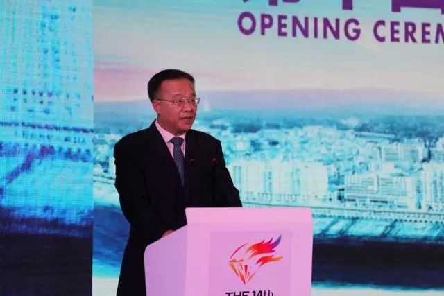 ????梧州市委書記、市人大常委會主任、第十四屆梧州寶石節組委會主任黃俊華在開幕式上致辭。 黃俊華代表中共梧州市委、市人民政府以及340萬梧州各族人民,向蒞臨本次盛會的各位領導、各位來賓、各位朋友表示熱烈的歡迎!他表示,走過了十四年歷史的梧州寶石節,今年恰逢梧州建城2200年,兩者相遇,注定是一場提高人氣、凝聚人心、尋求機遇、共謀發展的盛會!
