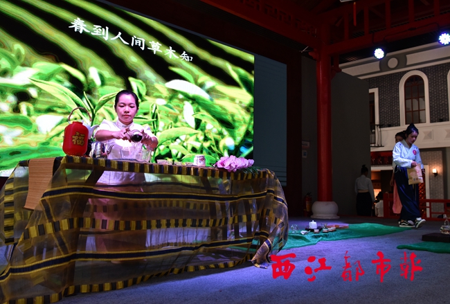 參加六堡茶技能大賽的選手展示茶葉沖泡技藝。西江都市報記者 何鎏 攝