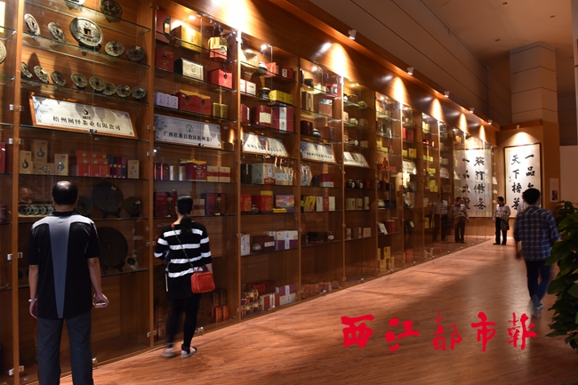 ????在場館的四周,廣西梧州六堡茶股份有限公司、梧州茶廠、梧州中茶茶業(yè)有限公司、梧州茂圣茶業(yè)有限公司、天譽茶業(yè)有限公司、芊河茶業(yè)發(fā)展有限公司、山農(nóng)茶業(yè)有限公司等茶企都各自設(shè)立體驗區(qū),讓市民游客感受六堡茶在新時代的傳承與發(fā)展。各參展的六堡茶企業(yè)還重點展示新款包裝的產(chǎn)品,希望通過精美的包裝促進六堡茶文化的推廣。