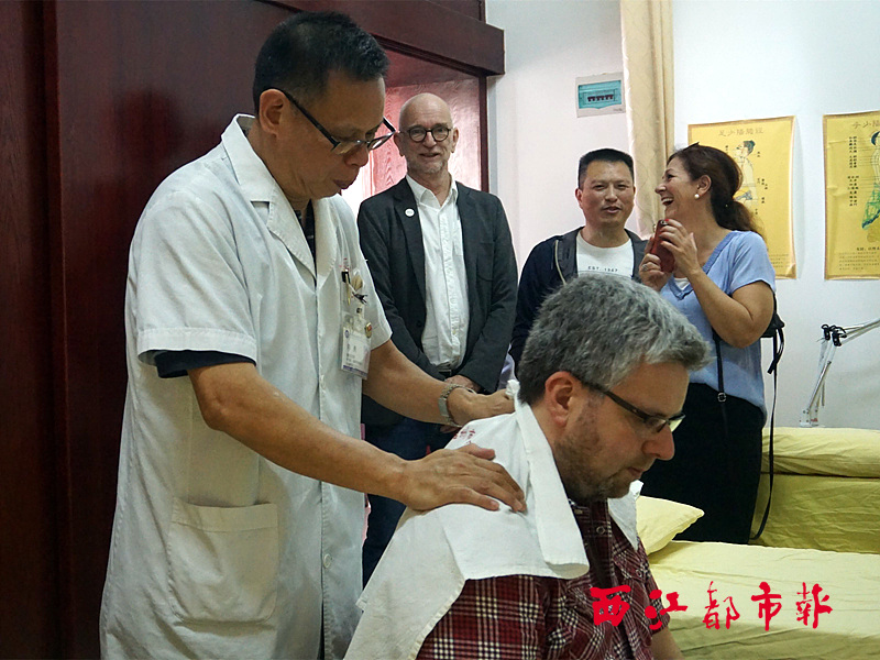 ????10月27日,瑞典本茨弗什市參訪團到梧州市中醫醫院參觀訪問,并現場體驗了推拿按摩等中醫特色療法。