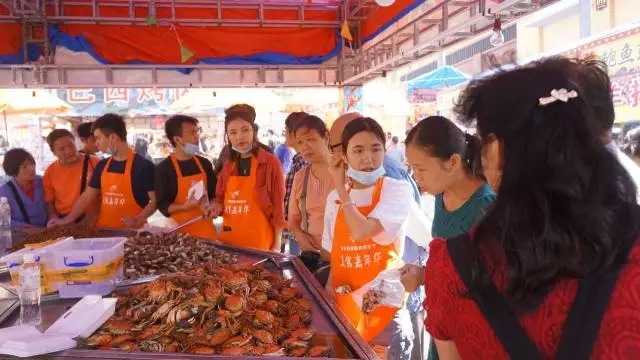 “海鮮大鍋”擺了螃蟹、扇貝等海鮮。