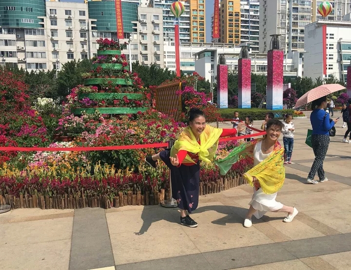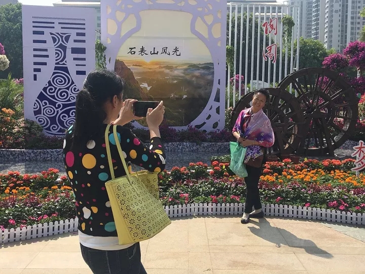 ???一位正在和家人拍照的黃阿姨告訴零妹,她家就住在市政廣場附近,每年寶巾花展她都會叫上親戚朋友一起來賞花拍照。“看著寶巾花展一年比一年辦得好,作為市民的我除了感到高興,還很自豪,因為我們的梧州更美了!”