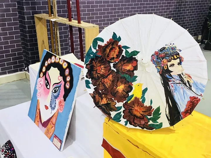除了臉譜外,展區(qū)內(nèi)還有畫上粵劇元素的油紙傘展示。