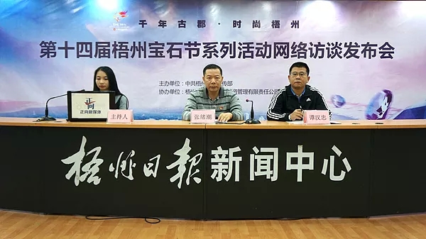 ??? 昨天上午,第十四屆梧州寶石節(jié)系列活動(dòng)網(wǎng)絡(luò)訪談發(fā)布會(huì)在梧州零距離網(wǎng)直播室舉行,梧州市文化新聞出版廣電局副局長張緒潮、梧州市體育局副局長譚漢忠,分別在會(huì)上通報(bào)了第三屆廣西(梧州)粵劇節(jié)、中國—東盟國際體育舞蹈公開賽兩項(xiàng)寶石節(jié)系列活動(dòng)的籌備情況,并回答了網(wǎng)友的提問。