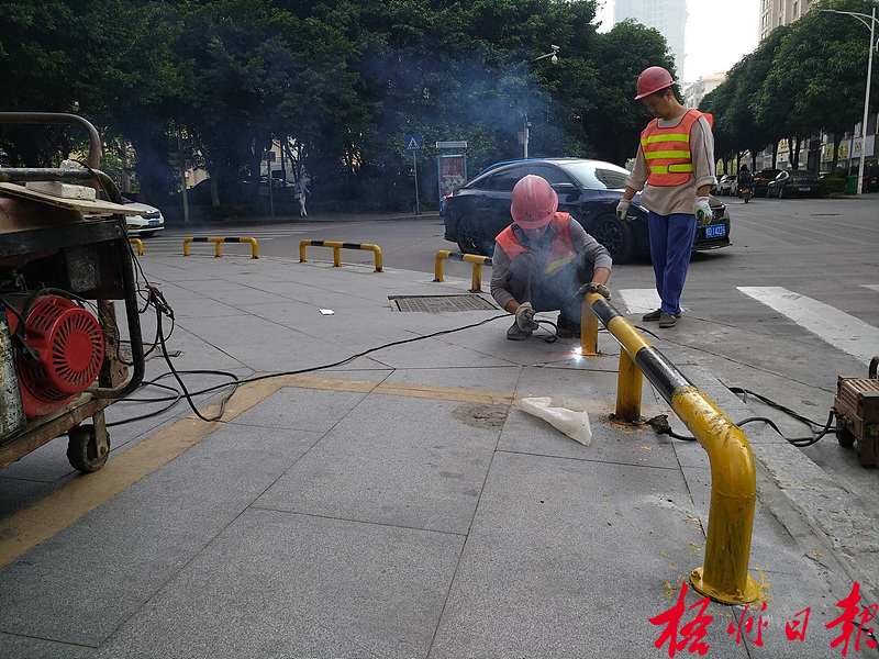 ????近日,市政管理部門完成市政府周邊人行道改造施工,并陸續在冬湖路、迎賓路等道路的人行道加裝攔車樁,保護路面免遭破壞。