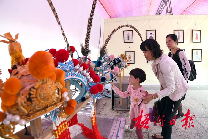 11月4日,在市文化展覽中心,市民在駐足欣賞粵劇表演的各種“行頭”?! ?/span> 2017年第三屆廣西(梧州)粵劇節(jié)今日拉開帷幕。當(dāng)日,不少民眾提前來到文化展覽中心前的展覽區(qū)領(lǐng)略粵劇文化的魅力。 蒙紹松 攝 梧州日報(bào)訊(記者 李欣鞠)精致的頭飾,多彩的臉譜,婉轉(zhuǎn)的粵曲……11月4日,市文化展覽中心廣場熱鬧非凡,正在舉行的粵劇節(jié)職工群眾系列活動吸引了眾多群眾參與。 粵劇節(jié)職工群眾系列活動分為粵劇大舞臺全民動起來、“粵劇節(jié)”文創(chuàng)展暨職工技能現(xiàn)場展示兩大部分,包括2017年首屆粵曲戲迷票友爭霸賽、粵劇“唱吧”活動、展示職工群眾創(chuàng)意設(shè)計(jì)作品等活動,充分調(diào)動粵曲戲迷票友參與積極性,豐富基層單位職工的業(yè)余文化生活?;顒訌?1月3日開始,持續(xù)至11月9日。 “粵劇節(jié)”文創(chuàng)展暨職工技能現(xiàn)場展示,展出我市廣大職工群眾創(chuàng)意設(shè)計(jì)作品、技能實(shí)踐展示、工會會員企業(yè)文化創(chuàng)意作品。展覽設(shè)置八個(gè)特裝展位,以粵劇手工制品、粵劇戲服、道具、畫臉譜等體驗(yàn)主題為主。市十一中帶來的100多件創(chuàng)意臉譜繪畫及手工作品,和梧州學(xué)院、市美術(shù)館、梧州粵劇團(tuán)等展示的粵劇主題展品,吸引了不少市民觀賞、拍照。此外,還有30多個(gè)標(biāo)準(zhǔn)展位,展示玉石、茶壺、根雕、婚博、裝飾、東盟創(chuàng)意小食、名特優(yōu)產(chǎn)品等文創(chuàng)及相關(guān)元素。 粵劇“唱吧”活動引入時(shí)尚k歌新玩法,讓廣大職工群眾現(xiàn)場學(xué)唱粵曲,贏取粵劇文創(chuàng)小禮品,打造全民參與唱粵曲,推廣普及粵劇文化的平臺,真正讓粵劇文化走近群眾心中?;顒蝇F(xiàn)場,粵曲愛好者和職工群眾紛紛點(diǎn)唱自己喜愛的粵曲,到舞臺上一展唱腔,悠揚(yáng)曲調(diào)此起彼伏。化妝師還為感興趣的群眾化上粵劇裝,讓大家充分體驗(yàn)粵劇文化的魅力。 2017年首屆粵曲戲迷票友爭霸賽將于11月5日至9日舉行,邀請民間業(yè)余文藝團(tuán)隊(duì)參與粵曲擂臺爭霸,相互切磋技藝,為我市廣大職工群眾和粵曲愛好者搭建展示交流的平臺,營造全民參與粵劇節(jié)的濃厚氛圍。 據(jù)了解,本屆粵劇節(jié)突出互動體驗(yàn)性,擴(kuò)大了群眾參與面。所有演出活動都是公益演出,并通過粵劇大舞臺全民動起來、“粵劇節(jié)”文創(chuàng)展暨職工技能現(xiàn)場展示、粵劇名家進(jìn)校園、進(jìn)社區(qū)活動,普及粵劇歷史知識,讓更多人了解和喜愛粵劇。 |