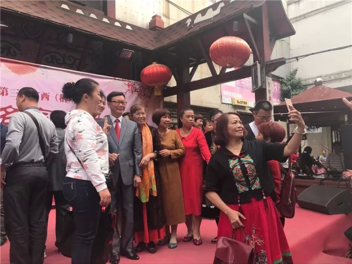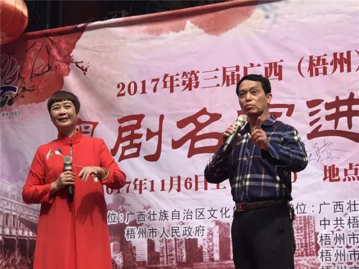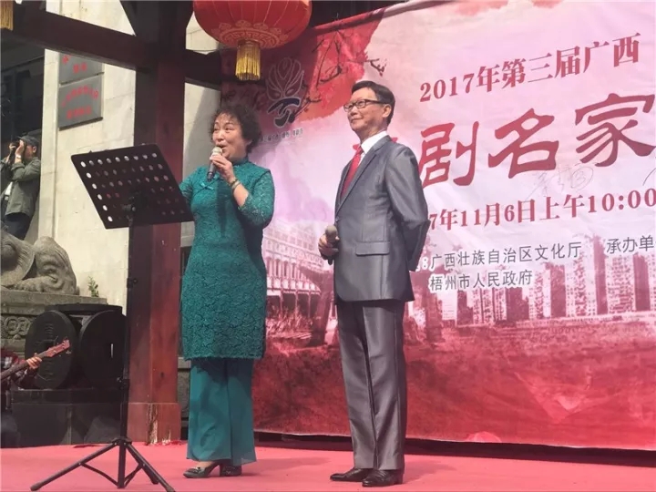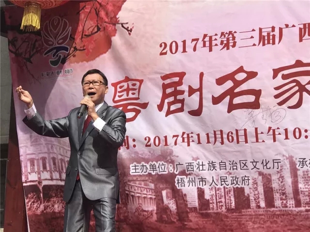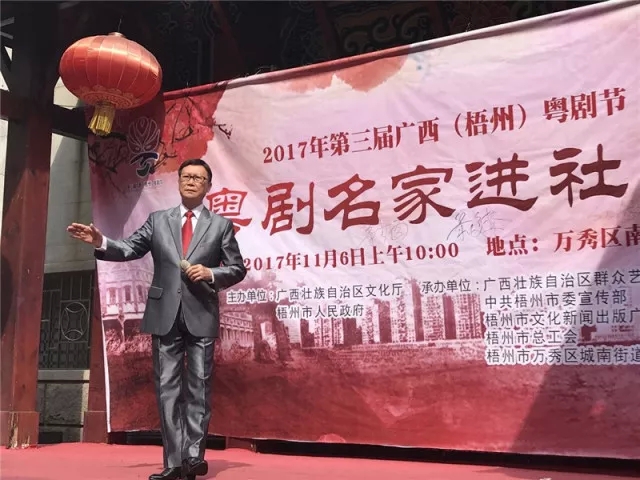 ??? 馮老師一上臺便親切地說,自己與梧州有緣,在20多年前便來過梧州演出,這些年間也曾數度來梧。今年,籍著廣西(梧州)第三屆粵劇節的機會再次來梧,他感覺梧州城市變化越來越大了,但是淳樸的民風、群眾對粵劇的喜愛之情一直沒有消減,“在梧州來說,粵劇是深入民心的,如今,主要的問題在于如何讓年輕一輩接棒傳承下去。” ? ??? 在候場時,一位路過的老伯與“金醫生”閑話家常,“金醫生,你真人比電視上看起來要胖一點。”每天打開電視都會看到的電視角色,今天終于見到真人,真是滿滿的親切感,猶如“街坊街里”一般。 ????    一曲演完,臺下觀眾齊喊“安可安可”,馮剛毅盛情難卻,隨后邀請一觀眾上臺合唱一曲。