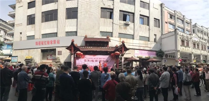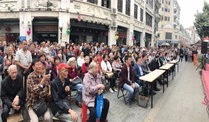 ??梁素梅與粵劇愛好者獨對唱《花好月圓》。 ????“平常都只能在電視里看,收音機里聽,沒想到在家門口就能欣賞到這些名梅的粵劇表演。”家住南中社區的李姨說起今天上午在騎樓城小舞臺欣賞到的一場精彩粵劇表演,仍覺得回味無窮。