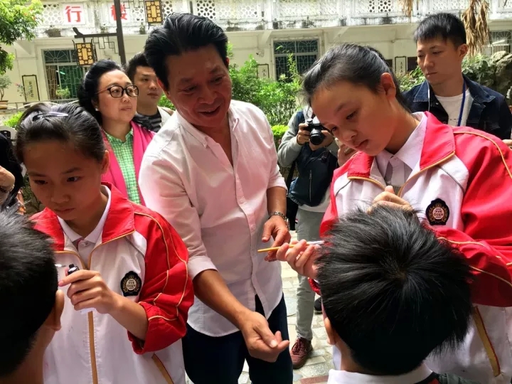 這位行動不便的老人家坐在輪椅上專心地欣賞臺上演員唱出的一句句粵韻清音 。????   演出后,深受喜愛的“金醫生”馮剛毅被群眾圍著合照及簽名。 ????梁素梅:“我覺得來梧州好像回到自己家一樣,大家非常熱心熱情。”此外,梁素梅對于梧州的粵劇氛圍給出了極高的評價,她表示,“歷屆粵劇節我都有來,梧州的粵劇氛圍以及群眾基礎極好,群眾十分熱情。很開心能得到梧州戲迷的歡迎與熱愛,相信通過粵劇節的一系列活動,能更好地促進今后梧州粵劇的發展。” ????黎駿聲對梧州的越劇愛好者的表現也給予了極大的認同。“梧州粵劇發燒友水平不錯,即使他們是非專業,但是對粵劇的投入程度并不比專業人士要少。” ????原來大演員們也是那么隨和、那么平易近人的。 ????另一邊廂,歐凱明、陳韻紅、崔玉梅來到市第十一中學,了解我市戲曲進校園活動的成果,并即場指導學生在粵劇表演方面的技藝。