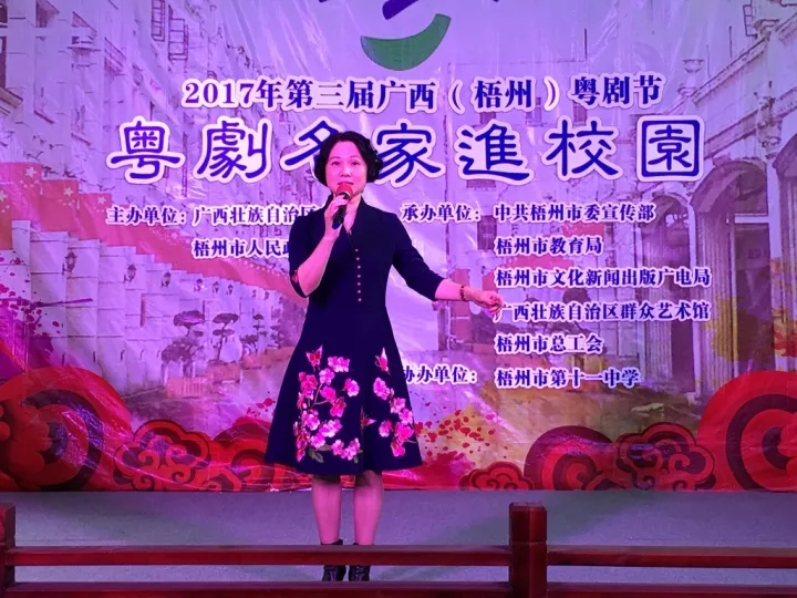 ?黎駿聲走入觀眾席,派發紀念品,引起轟動。 ? 梁素梅與梧州粵劇愛好者合唱《花好月圓》。 ????在現場,梁素梅為粵劇愛好者現場指導,并分享了她當初學粵劇時的故事。她說,為了能在百花競艷的藝苑占據一席之地,她在粵語的咬字方面是下了一番極大的苦工。