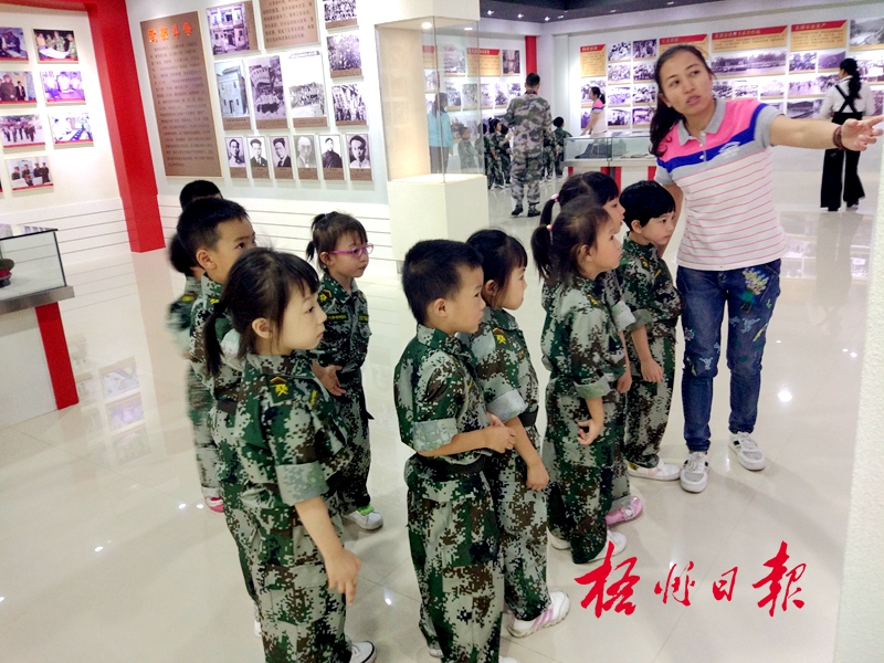 ??? 11月3日,在梧州軍分區駐地,六一幼兒園的孩子們參觀軍史館。
