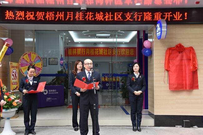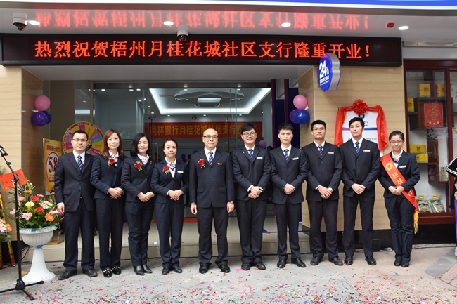 2017年11月23日,桂林銀行梧州月桂花城社區(qū)支行正式開業(yè)。梧州分行行長李樹森出席了開業(yè)儀式,并與社區(qū)負(fù)責(zé)人共同為社區(qū)支行揭牌。