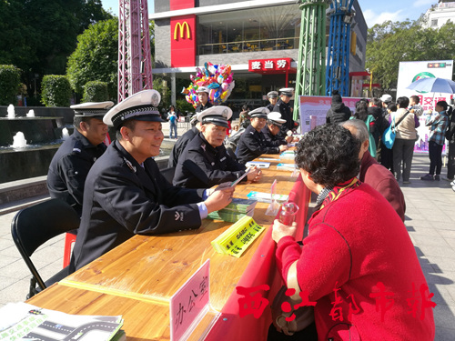 當天上午10時,活動主辦方在現場放置多塊交通安全知識展板,向市民宣傳交通事故處理、高速公路注意事項、禮讓斑馬線等知識,吸引不少人駐足了解。市交警支隊各城區大隊、高速路大隊、車管部門、法制宣傳部門也通過派發交通安全知識資料、現場解答市民關注的交通問題等形式,向市民宣傳文明出行的交通理念。
