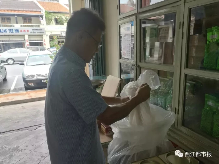 不過,受限于當地華人群體的總量和構成,馬六甲的茶樓食肆規模一般都不大。因此,像裕生隆這種一級進口商購入的六堡茶,更多是批發給其他茶莊茶行,再由這些茶莊茶行零售給當地的小茶室小餐館。 高銘發茶莊在馬六甲創建至今已有80多年的歷史,其主營品種是福建茶。但是,2017年9月10日,56歲的現任掌柜高培材接受采訪時談及,高銘發茶莊從創辦伊始就銷售六堡茶。20世紀50年代以后,茶莊一般是從其他茶行或大型進口日雜百貨商處購進六堡茶,再賣給當地的小食店和小餐館。那些小食店、小餐館買回去的六堡茶都是免費提供給客人作為佐餐茶水。因為小食店、小餐館每次購買六堡茶的量只有三兩斤,所以,高銘發茶莊只能把整籮六堡茶打散拆碎后再進行銷售。“一年下來,茶莊的六堡茶銷量也有幾百斤”。 除了作為居民家庭飲用茶和餐館供應茶外,因價格低廉,六堡茶在當地被廣泛使用,甚至當地的寺廟也購進六堡茶,作為“香火茶”分發給信徒。在當地的日雜店鋪,六堡茶還曾作為促銷禮品使用。馬六甲的六堡茶愛好者蔡玉芳記得,陳春蘭茶行曾推出過買醬油送六堡茶的活動。 貨輪木船接力運 與華工遠渡重洋來到馬六甲一樣,六堡茶南來馬六甲,也離不開船。于是,“茶船古道”的境外延伸線,又從新加坡向馬六甲拓展了250多公里。