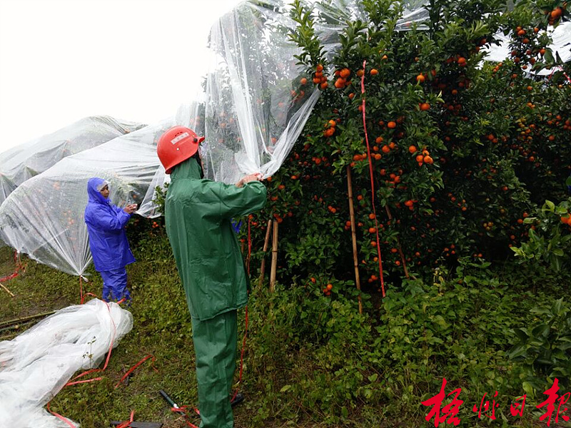目前正值砂糖橘成熟采摘期,但近日我市降溫降雨天氣持續(xù),當(dāng)?shù)毓r(nóng)及時(shí)采取防寒保果措施,確保果品質(zhì)量不受影響。蘇夢(mèng)椿 攝