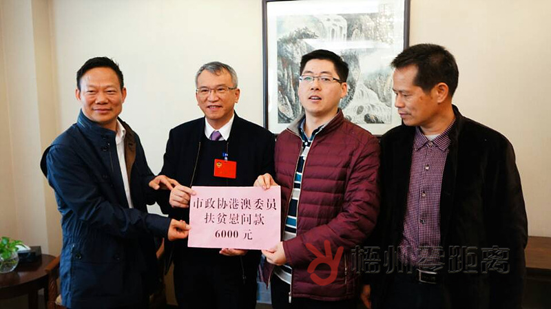 梧州零距離網訊 (梁金麗 黃丹婷 文并攝)1月9日下午,市政協港澳委員為岑溪市歸義鎮謝村貧困戶實現“微心愿”的扶貧捐款活動在江濱國際大酒店13樓會議室舉行。活動現場,市政協港澳委員向謝村捐款6000元,用于幫助村里26戶貧困戶實現“微心愿”,給貧困戶送去冬日溫暖,為梧州市精準扶貧貢獻一份力量。
