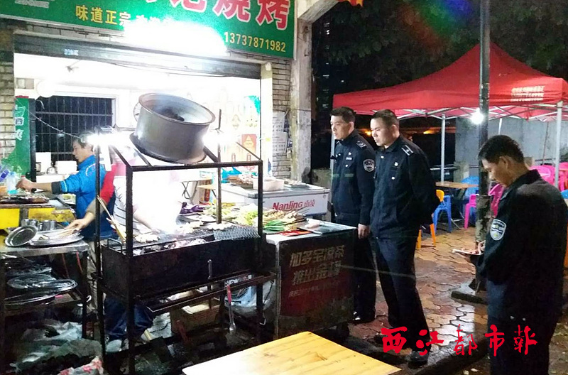 2017年11月,城管執法人員對潘塘公園附近露天燒烤大排檔的違規經營行為進行整治。