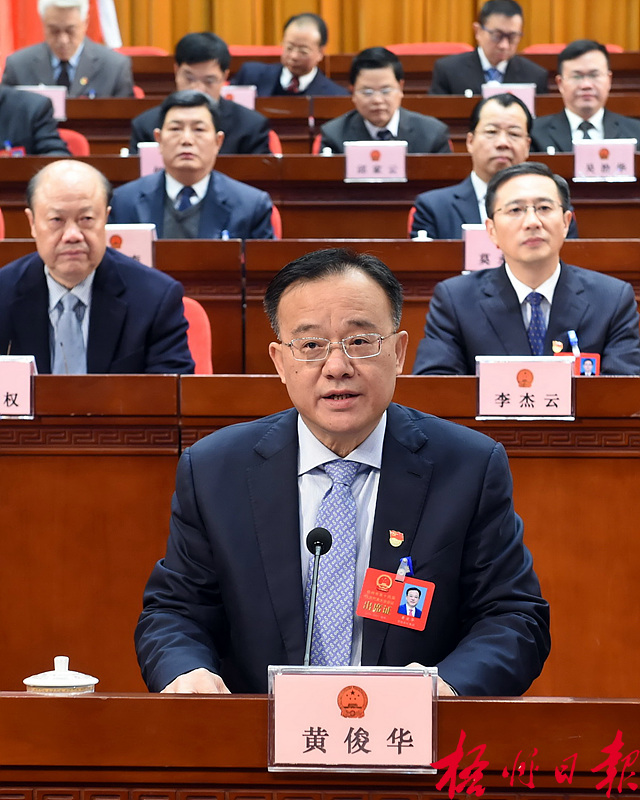 市委書記、大會主席團常務主席黃俊華主持會議,并宣布大會開幕。孟亞西 攝 在熱烈的掌聲中,代理市長李杰云代表市人民政府向大會作政府工作報告。