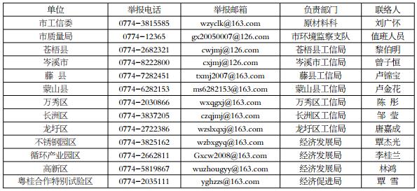 關于公布梧州市嚴防“地條鋼”死灰復燃舉報熱線和郵箱的通告 根據(jù)國家發(fā)改委、工業(yè)和信息化部等23部委《關于做好嚴防“地條鋼”死灰復燃有關工作的通知》(發(fā)改產(chǎn)業(yè)〔2017〕2306號)和自治區(qū)嚴厲打擊和取締“地條鋼”工作領導小組辦公室《關于開展嚴防“地條鋼”死灰復燃大排查工作的通知》(桂發(fā)改工業(yè)〔2018〕135號)精神,為鞏固我市取締和打擊“地條鋼”成果,保持打擊“地條鋼”的高壓態(tài)勢,按照有關通知要求,我市在各縣(市、區(qū))和園區(qū)設立了嚴防“地條鋼”死灰復燃舉報電話和舉報郵箱。現(xiàn)予以公布,歡迎社會各界參與監(jiān)督。