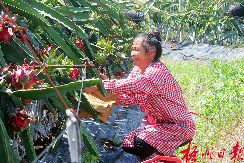 梧州日報訊 近日,筆者來到位于岑溪市歸義鎮大寨村安安農業科技發展有限公司的火龍果產業示范區,只見鮮紅的火龍果嬌羞地從綠枝中探出小腦袋來,空氣中散發出陣陣果香……這是岑溪市歸義鎮火龍果示范園區的成功樣板,更是該市實現“產業富民”的重要法寶。