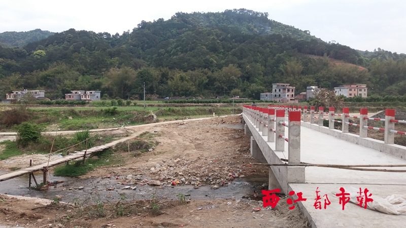 剛建成的大科橋,它的旁邊是村民自建的簡易橋。西江都市報記者 紀榮蘭 攝
