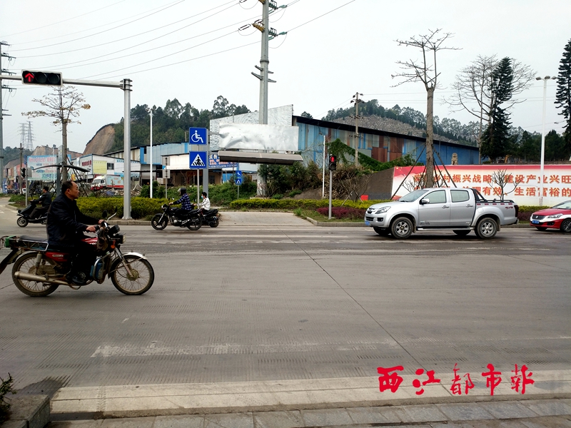 在仙風山附近十字路口,斑馬線已變得模糊不清。西江都市報記者 蒙敏瑩 攝