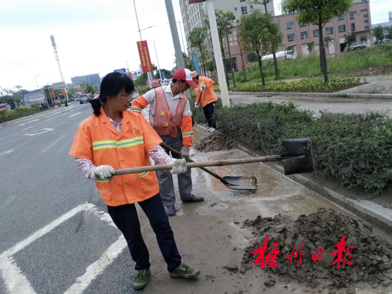 當天,長洲區環衛站組織60多位環衛工人,集中清理紅嶺1號路、8號路和三龍路的垃圾和泥沙,并沖洗街道,維持良好的衛生環境。