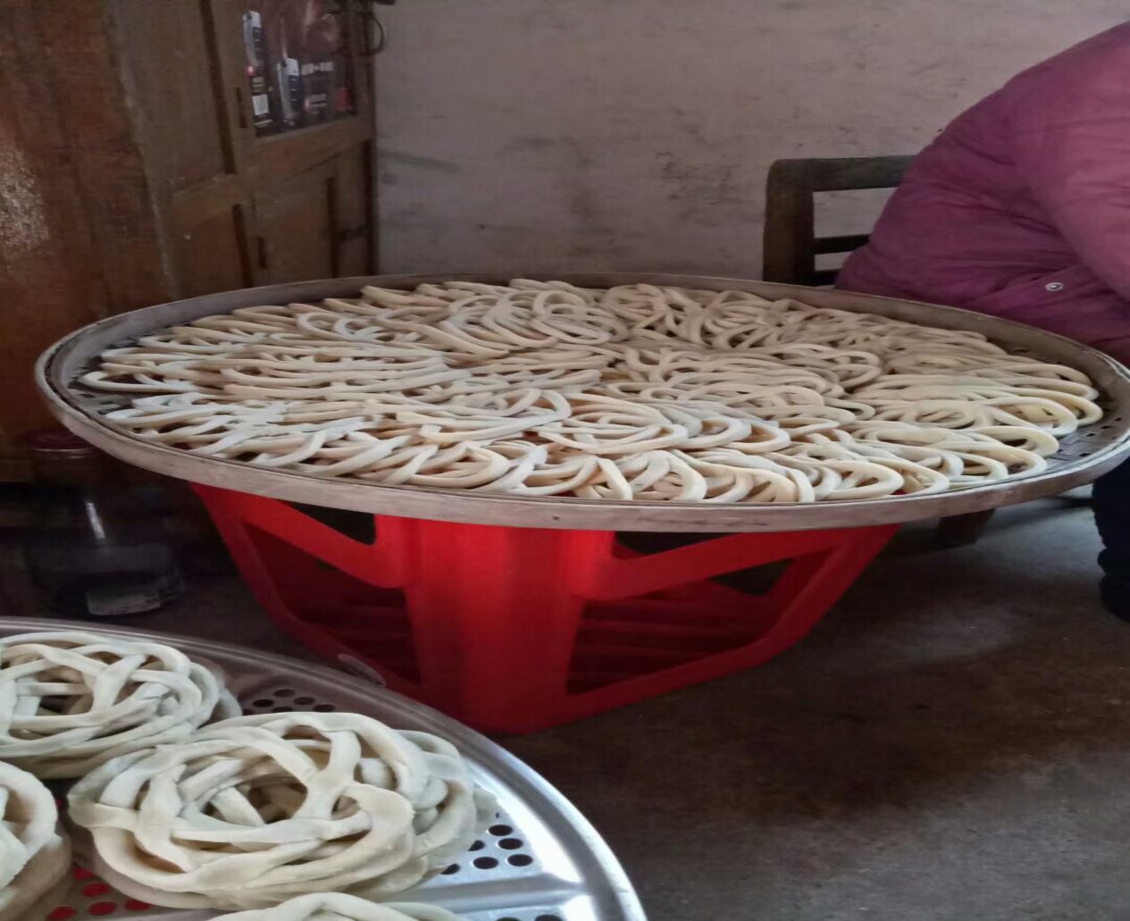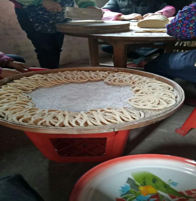 記得小時候,才過小年夜,家鄉的人們便開始忙碌起制作年貨了——做米餅和炸糖環。它們都需要幾道工序,一個人是忙活不過來的,于是全家總動員。