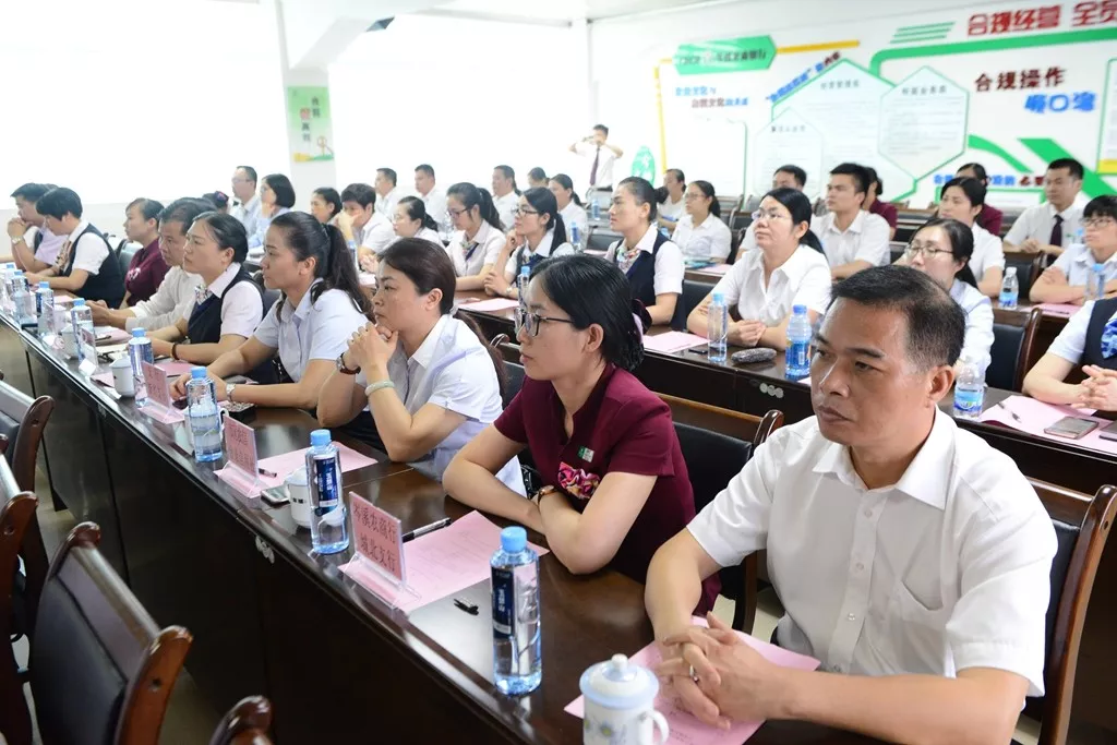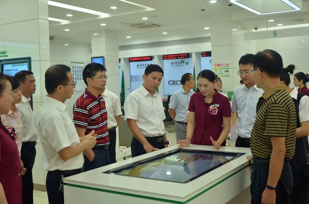 主辦單位及各銀行機構領導與獲獎代表合影。 既然是經驗交流學習,來到“百佳示范單位”的廣西岑溪農商行營業部,獲益最深莫過于參觀、體驗,大家紛紛抓住這次難得的機會,學習他們的所長,借鑒他們的成功之處。