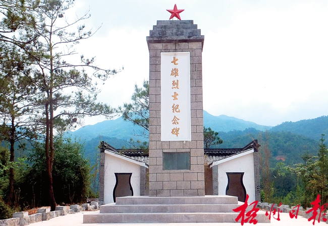 七雄烈士紀(jì)念碑位于神仙灘畔望君山的山巔。 父親喃喃話語伴隨神仙灘滔滔河水,述說著七雄烈士英勇悲壯的故事。1950年4月30日晚,解放軍135師405團(tuán)二營兩個連,在師政治部主任卜占亞的帶領(lǐng)和縣大隊的配合下,向土匪殘部逃往的老巢穴吉太七塊田撲去。在一幢青磚樓前,兩位戰(zhàn)士高攀竹竿,上綁炸藥,迅速沖向土匪盤踞的樓房,毅然點火引爆。“轟”的一聲巨響,墻基頂部被炸開了一個窟窿,兩位董存瑞式的戰(zhàn)士壯烈犧牲了。次日10時許戰(zhàn)斗結(jié)束,我軍擊斃匪首徐文炎、曾克圣、曾飛燕及匪徒等38人,俘獲匪徒50多人。我軍犧牲7名戰(zhàn)士,7位英勇的解放軍戰(zhàn)士用鮮血與生命守護(hù)了當(dāng)?shù)匕傩眨髞恚嗣駷榧o(jì)念先烈的英勇事跡,在那里建起了七雄烈士紀(jì)念碑。