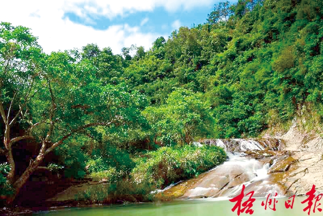 神仙灘屬丹霞地貌,灘地的石塊平整得像打磨切割過一樣。 三江口自然村95歲居民朱雀榮對神仙灘的美麗傳說娓娓道來。據(jù)說,古代有一位神仙想把吉太一帶的石山全搬走,填平溝壑,開辟良田,造福于民。一天夤夜,神仙用法術(shù)悄悄地把一堆堆大石頭沿著婉轉(zhuǎn)北流的吉太河趕向大山外,趕到三江口處,卻恰遇上石人學(xué)雞鳴。結(jié)果,法術(shù)失靈,一堆堆亂石只能滯留于此。趕過大石頭的地方就留下一段“大水渠”,渠底十分平整光滑,在下游不遠(yuǎn)處就形成了一處大瀑布,也就是今天壯觀的白霜澗瀑布,石人則化成一尊雕塑,屹立在神仙灘不遠(yuǎn)處的山上,村民便把那山稱為石人山,今天仍屹立著。 據(jù)吉太社區(qū)黨支書曾凡健介紹,從地質(zhì)角度來說,如此鬼斧神工的神仙灘,屬于丹霞地貌,是我國南方紅色巖系發(fā)育的一種特殊地貌,是地殼經(jīng)過漫長的上升運(yùn)動,巖底的河床,巖層節(jié)理變化,雨水河流的沖刷逐步形成的,的確罕見。 我們行走神仙灘,河水磅礴,水汽蒸騰,令人不得不驚嘆大自然的博大雄奇。抬頭上望,左有望君山,右有石人頂,神仙灘坐落在這兩山之間絕壁之下,灘底由一塊塊巨大且平整得像打磨切割過的石塊有規(guī)則地拼成,異常壯觀,灘的中段和盡頭處有兩個深不可測的石穴,每穴直徑三四米。好奇的村民曾下去探測過,每穴大約四五米深,可見大自然的神奇奧秘。 山清水秀石奇,是神仙的灘獨具神韻。近年來,當(dāng)?shù)卣谥鸩桨焉裣蔀╅_發(fā)成嬉水、沖浪、觀光等娛樂于一體的景點。 與這個鬼斧神工的河灘景點同樣有名氣的,還有附近的一片英雄土地。這片英雄的土地就是灘畔望君山山巔上的七雄烈士紀(jì)念碑。上世紀(jì)50年代初,為了解放這片土地,曾有過一段可歌可泣、不能忘卻的崢嶸歲月。那天,我們行走神仙灘后,年邁的父親率先爬上100多級階梯,到達(dá)七雄烈士紀(jì)念碑陵園,巍峨石碑,濤濤松柏,銘記著七雄的歷史。我瞻仰著這紀(jì)念碑,肅然起敬。