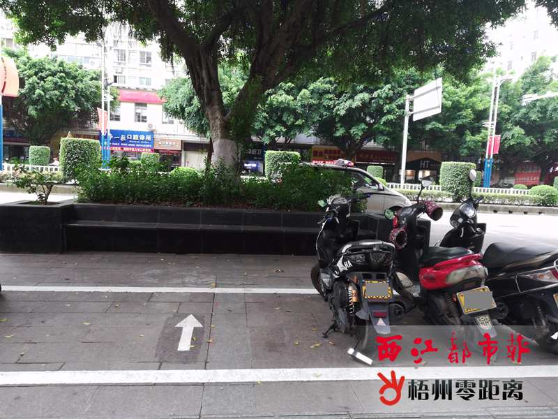 經過升級改造,梅西生活廣場周邊道路的兩輪車停車位新增方向指引箭頭。記者 陳雨燕 攝