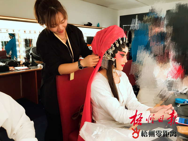 龐廣蛟 6月16日,馮杏受梧州市長洲區(qū)文化館邀請,將為館員培訓化妝課。 馮杏來自岑溪波塘鎮(zhèn),本學粵劇表演的她,轉型蛻變成化妝行業(yè)的從業(yè)者,在粵劇妝容上造詣頗深。她的化妝“身價”是普通化妝師的六七倍,找她化妝需要提前一個月預約。她的化妝手法往往顛覆人們的審美角度和思維,卻又讓他人驚嘆:“原來這么化妝著實好看”,她引領著粵港澳地區(qū)粵劇化妝風潮。
