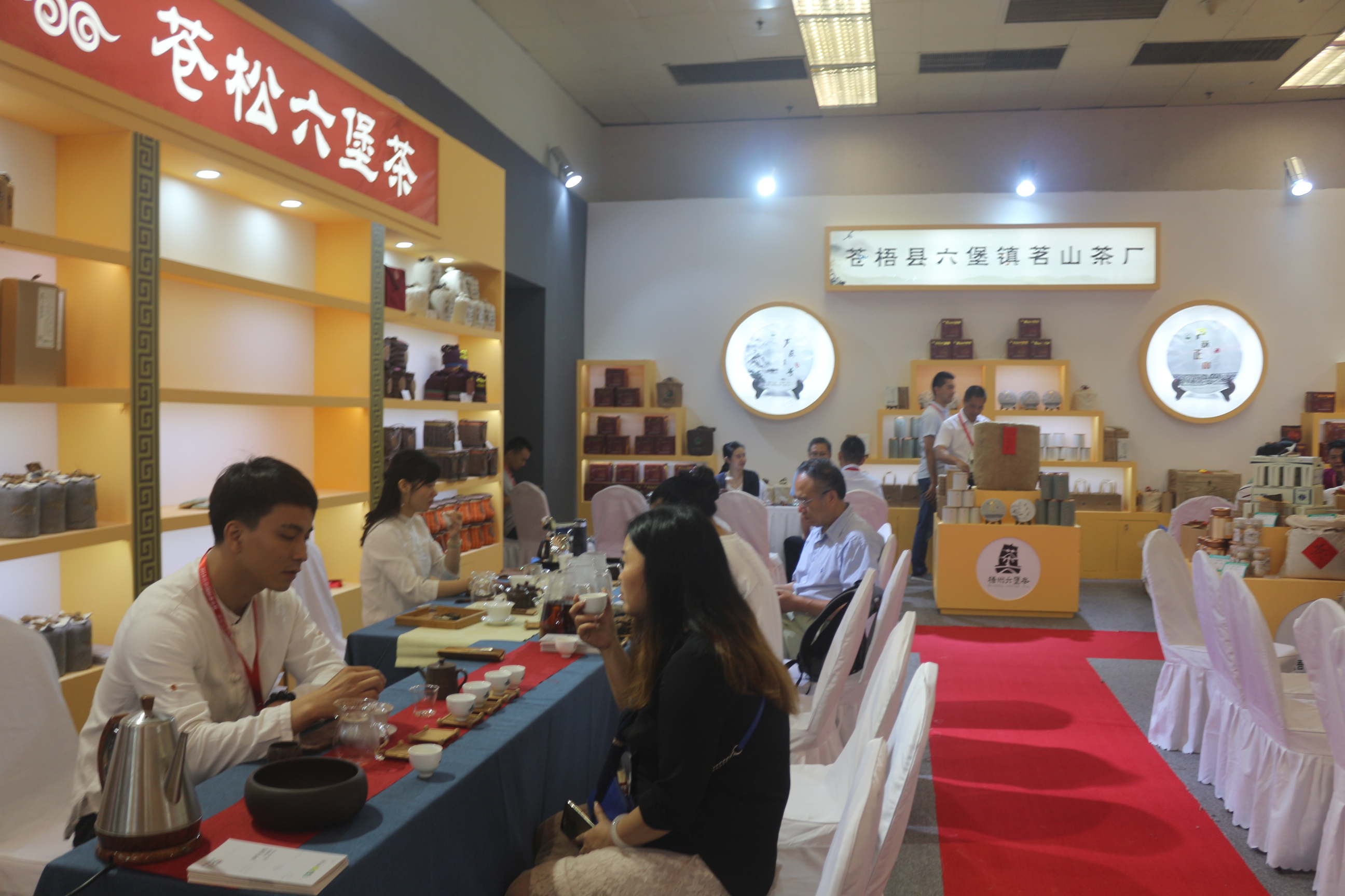茶商、茶葉愛好者紛紛到梧州市六堡茶展區品茶與咨詢。 據悉,2018年“兩展一節”從6月22日持續至6月25日。其中,梧州六堡茶文化節以“一帶一路新機遇茶船古道再揚帆”為主題,在北京展覽館和馬連道茶城分別舉行“以茶為媒茶和天下”梧州專題推介會、茶文化跨界高峰論壇暨“茶船古道”歷史文化研討會、梧州六堡茶生產企業展示展銷及系列推介會、精準扶貧專場拍賣會等多項主體活動,向世界展示梧州六堡茶的獨特魅力。