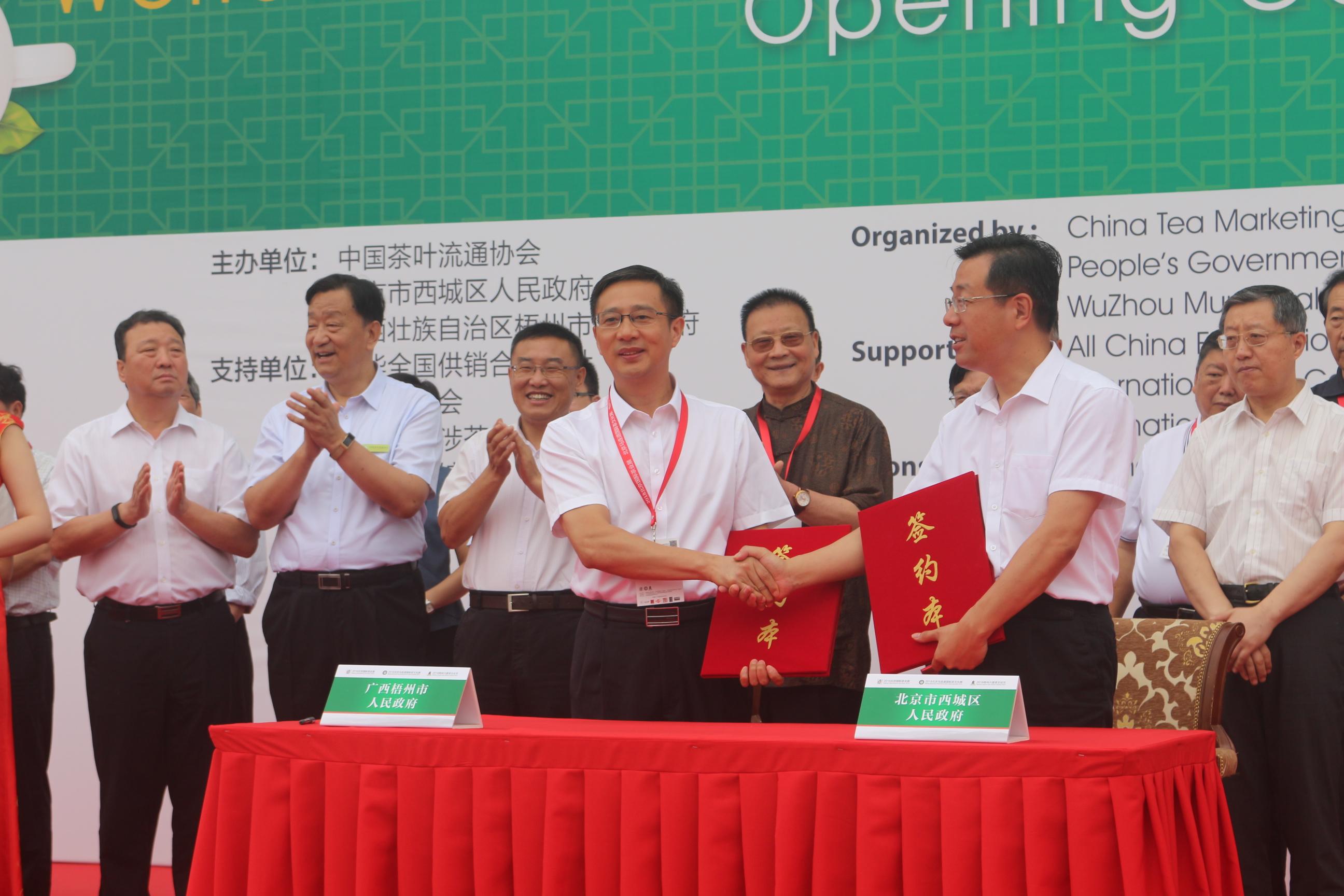 梧州市人民政府與北京市西城區人民政府共同簽署締結友好城市合作協議。 梧州市市長李杰云在開幕典禮上致辭。他說,目前,梧州六堡茶的品牌價值已達到20.17億元,位列全國黑茶產業第4名。去年,習近平總書記在致首屆中國國際茶業博覽會的賀信中,將梧州六堡茶的“茶船古道”與“古代絲綢之路”“茶馬古道”并提,在茶葉界和文化界引起了廣泛關注。