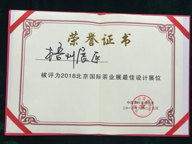 梧州展區被評為2018北京國際茶業展最佳設計展位。