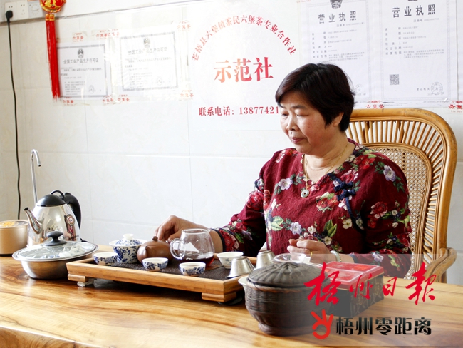 陳奎香沖泡品鑒茶工制作的六堡茶。“六堡茶微刊”供稿
