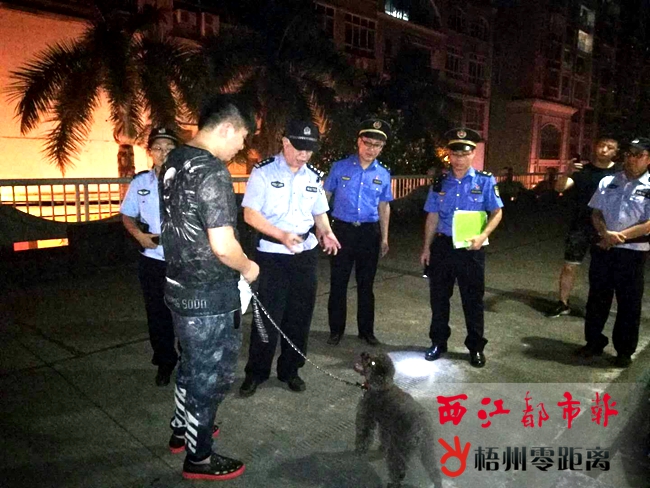 今年5月,梧州市多部門組成的執法隊伍開展不規范遛狗整治專項行動,對養狗人加強文明教育。(梧州市公安局供圖)