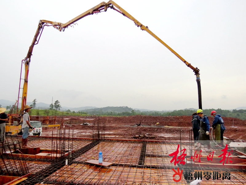 8月12日,藤縣金雞鎮易地扶貧(集中)搬遷項目正在澆筑房屋主體結構。