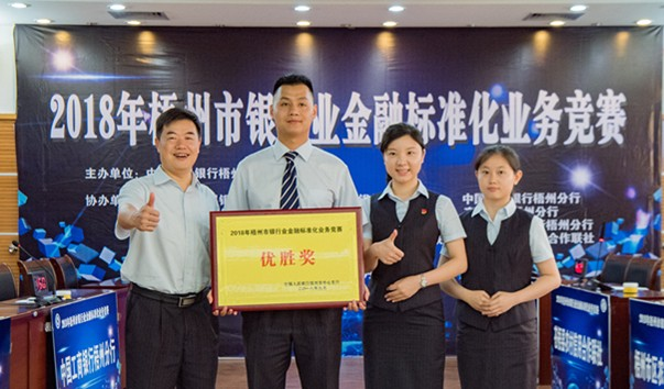 ?9月5日,由人民銀行梧州中心支行舉辦的“2018年銀行業(yè)金融標(biāo)準(zhǔn)化業(yè)務(wù)競(jìng)賽”在該行辦公大樓十樓會(huì)議大廳正式開鑼。交通銀行梧州分行代表隊(duì)經(jīng)過與來自我市銀行業(yè)共13支參賽隊(duì)的激烈角逐,最終以良好的競(jìng)技狀態(tài)與競(jìng)賽成績(jī)榮獲團(tuán)隊(duì)“優(yōu)勝獎(jiǎng)”,代表隊(duì)全體隊(duì)員還同時(shí)獲得“2018年度金融標(biāo)準(zhǔn)化業(yè)務(wù)知識(shí)先進(jìn)標(biāo)兵”榮譽(yù)稱號(hào)。 為響應(yīng)國(guó)家《金融業(yè)標(biāo)準(zhǔn)化體制建設(shè)發(fā)展規(guī)劃(2016-2020年)》精神,貫徹落實(shí)人民銀行關(guān)于“十三五”期間強(qiáng)化金融標(biāo)準(zhǔn)實(shí)施重點(diǎn)任務(wù)而精心組織的一次重要活動(dòng)。交通銀行梧州分行在人民銀行梧州中心支行的指導(dǎo)下,連續(xù)兩年開展?fàn)I業(yè)網(wǎng)點(diǎn)服務(wù)認(rèn)證自評(píng)估工作,圍繞安全性、功能性、規(guī)范性、便捷性及舒適性五大方面積極開展對(duì)標(biāo)自查工作,努力推進(jìn)標(biāo)準(zhǔn)化工作在交行梧州分行的落地執(zhí)行。本次競(jìng)賽中我行選手以良好的精神面貌和職業(yè)素養(yǎng),通過對(duì)各類服務(wù)標(biāo)準(zhǔn)的準(zhǔn)確回答,以及全英語標(biāo)準(zhǔn)化接待外籍客戶的模擬服務(wù)場(chǎng)景展示,獲得活動(dòng)評(píng)委的充分肯定,現(xiàn)場(chǎng)觀眾陣陣掌聲,充分展現(xiàn)了我行在落實(shí)金融服務(wù)標(biāo)準(zhǔn)化工作上的成效。 我行將以本次競(jìng)賽結(jié)果作為進(jìn)一步細(xì)化和完善營(yíng)業(yè)網(wǎng)點(diǎn)標(biāo)準(zhǔn)化服務(wù)的契機(jī),加大對(duì)營(yíng)業(yè)網(wǎng)點(diǎn)標(biāo)準(zhǔn)化工作的質(zhì)量提升力度,助推我行標(biāo)準(zhǔn)化服務(wù)與規(guī)范化經(jīng)營(yíng)的加快發(fā)展。