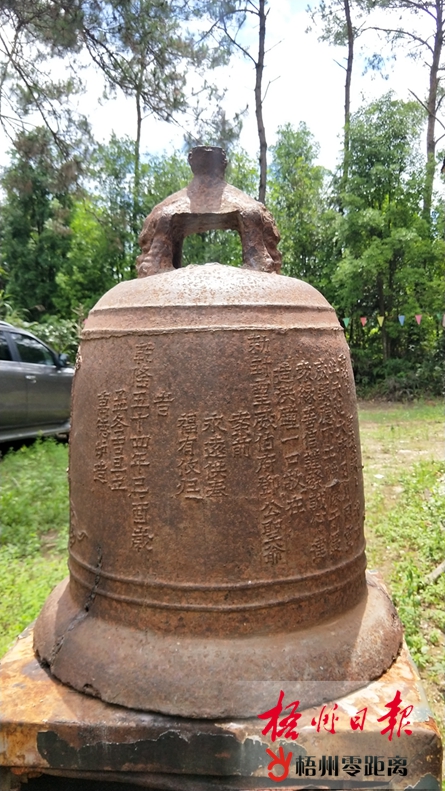 龐廣蛟 文/攝 在岑溪梨木鎮河木村,有一口保存完好的古鐘,距今已有229年,至今仍聲音洪亮。因為經常使用,鐘身有10厘米長的裂痕,但已經焊接好,不影響鐘聲效果,鐘聲敲響,聲音能傳到4里外的村莊。說起這口古鐘,頗有一番故事。