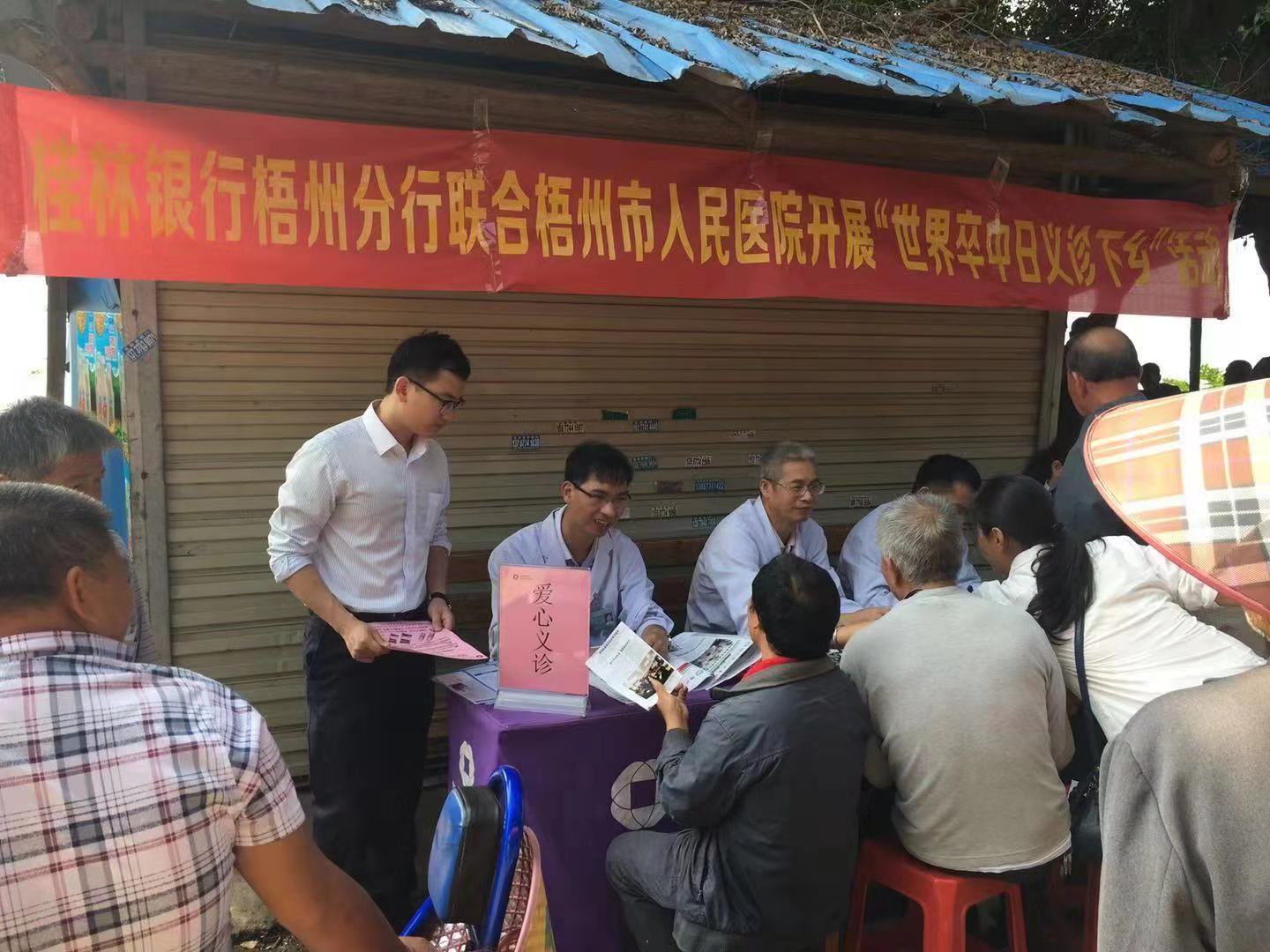 為持續(xù)推進(jìn)健康扶貧人人受益,讓農(nóng)村老百姓能享受到實實在在的健康服務(wù),桂林銀行梧州新興支行于10月25日邀請梧州市人民醫(yī)院專家教授一行8人前往該行對接的長洲鎮(zhèn)寺沖村,開展下鄉(xiāng)敬老福利-“世界卒中日健康義診”活動。 該行于近期在寺沖村設(shè)立了農(nóng)村金融服務(wù)站,在開展金融活動中了解到寺沖村常住人口中老年人居多、因病在村休養(yǎng)人員就診不便、群眾對常見病、慢性病重視不夠等實際問題,特邀市人民醫(yī)院醫(yī)療隊為全村群眾開展扶貧義診,為保障群眾健康提供健康支持。