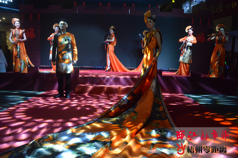 表演者進行華服走秀《騎樓八駿》的表演。黃培成 攝 活動精心的編排設計得到市民的肯定。與朋友結伴前來游玩的市民鐘女士說:“今天的騎樓城裝扮得特別有節日氣氛。白天時,騎樓城與華服元素相碰撞,充滿復古韻味;晚上則流光溢彩,熱鬧非凡。” (梧州零距離網-西江都市報記者 肖旻泰 通訊員 黎海平 黃斯宇) |
