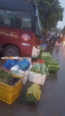 菜攤占道經(jīng)營,影響路面交通秩序。 現(xiàn)場:菜攤占道,堵塞嚴重 10月30日清晨6時,從機場路口往珍寶巴士停車場方向看去,遠遠就可以看到不少賣菜商販將攤檔擺放在路邊,菜販將商品、經(jīng)營工具等物品就這樣放置在路邊,而前來采購的商販則隨意將車停在旁邊,使原本就不寬的路面變得更加擁擠狹窄。