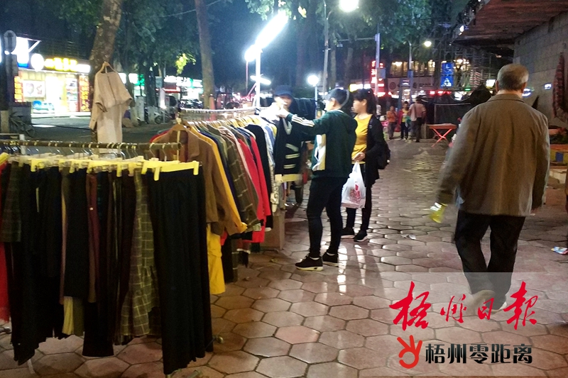 11月4日晚,在大學路中國工商銀行蝶山支行對出人行道,不少攤檔違規占道經營,影響行人正常通行。