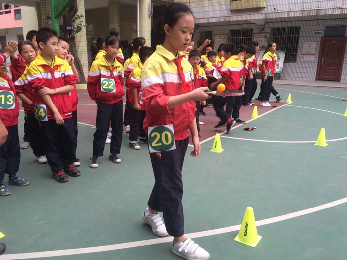 據了解,從第八場開始,選拔賽比賽項目做了一些調整。林廣總教練說:“今天的選拔賽項目由運送乒乓球、左右折返跑和投壺組成,用時最短的隊伍獲勝。”隨著一聲哨響,比賽正式開始,隊員們都在盡自己最大的努力為團隊贏得榮譽?!疤貞痍爢T”謝東澄說:“我耗時最長的項目是運乒乓球,一開始我不太穩得住,后來通過調整呼吸后就順利通過了。”
