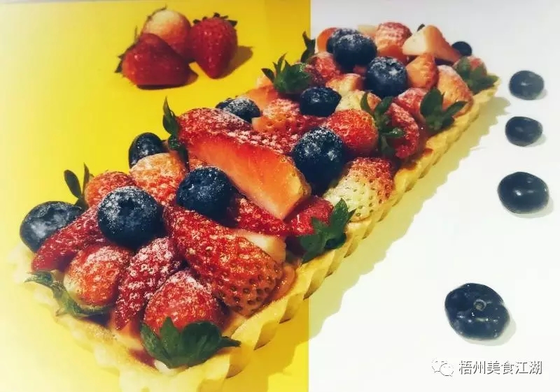 新鮮的草莓帶點(diǎn)微脆的口感,藍(lán)莓沒有酸味,感覺不錯(cuò)。這次的塔底依舊酥脆,黃油混合中間的卡仕達(dá)醬,有一種濃厚的甜味,但因?yàn)樗子幸粚硬葺u,所以很好地緩和了卡仕達(dá)醬的甜膩味,達(dá)到了一種微妙的平衡。