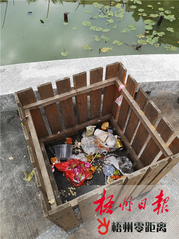 梧州日報記者 全淦枚 文并攝 潘塘公園升級改造后煥然一新,然而周邊環境依舊臟亂差。市民建議—— 潘塘公園是市民喜愛的公園之一,周邊更是我市熱鬧的地方。2018年底,我市啟動了潘塘公園升級改造工程,至今改造工程已初見成果。面對煥然一新的潘塘公園,不少市民感到高興。但正當市民沉醉在“美容”后的潘塘公園時,卻有市民反映稱,其周邊環境還存在臟亂差的現象,與升級后的潘塘公園不相符,仍需整治。 記者調查:周邊街道存在臟亂現象 根據反映,近日記者走訪了潘塘公園周邊街道。繞著潘塘公園四周走訪,記者發現,相比以往,周邊環境有了一定的提升,但是還是存在一定的臟亂問題,尤其是環境衛生的問題。記者發現荷花池上的涼亭、橋面的垃圾處理不當,垃圾筐較為老舊,有些還是破舊的木質垃圾筐,沒有筐底,只是四周圍成一個筐,把垃圾圍住,垃圾還是扔在橋面上。由于最近下雨多,被雨水沖刷后的垃圾流出不少污水,排到荷花池里。