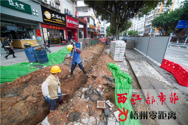 3月3日,在新興二路,中鐵一局施工人員在開挖路面。據了解,新興二路改造工程是我市城市基礎設施整體提升改造工程(二期)項目之一,計劃在新興二路西環路路口處改轉盤為渠化島,拓寬行車道寬度,并展開排水、綠化、強弱電、照明等工程施工,整個工程預計今年7月完工。 西江都市報記者 陳凡 攝